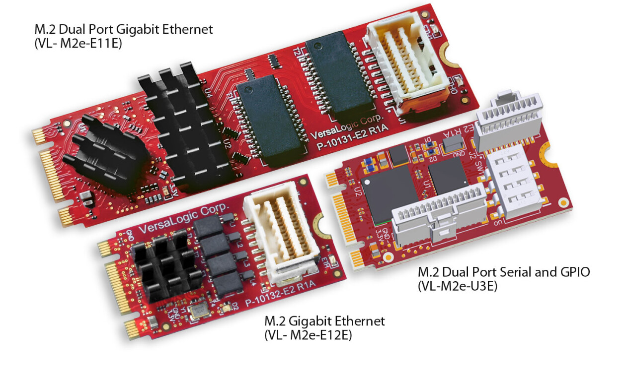 VersaLogic Corp, a leader in embedded computing and industrial connectivity solutions, has announced a new line of rugged M.2 modules designed for reliable operation in harsh environments. This new lineup includes modules featuring Single-port Gigabit Ethernet with onboard magnetics, Dual-port Gigabit Ethernet with onboard magnetics, Dual-port Serial & GPIO, and Dual CAN Bus modules. These modules are rated for operation in industrial temperature applications ranging from -40° to +85°C.