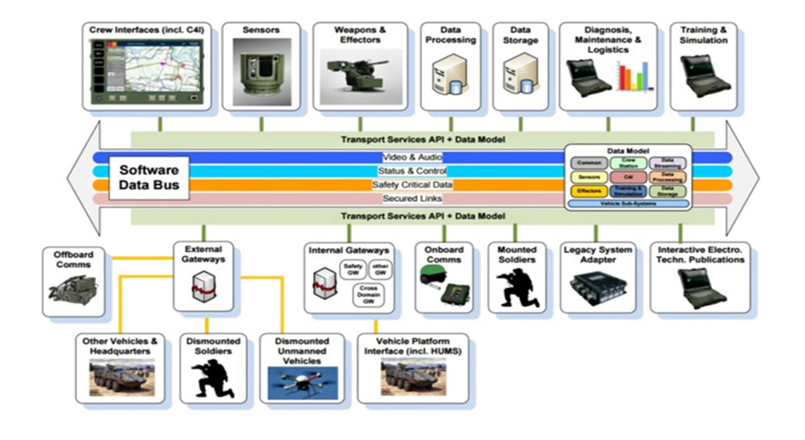 At its core, MOSA enables defense systems to be modular, loosely coupled, and highly cohesive, similar to the concept of “plug-and-play” components in commercial computing. A weapon system designed with MOSA principles consists of components – such as engines, sensors, and software modules – connected through well-defined interfaces that adhere to universal standards. One such standard is the U.S. Army’s VICTORY [Vehicle Integration for C4ISR/EW Interoperability].