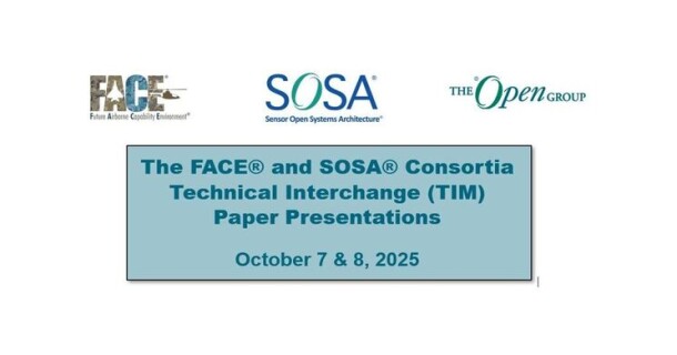 The FACE® and SOSA® Consortia Technical Interchange Meeting (TIM) will take place virtually on October 7 and 8, 2025. The meeting is open to the public and there is no charge to attend. Please visit https://meet.opengroup.org/event/FACEandSOSAPAPERS/home to sign up for Day 1 and Day 2.