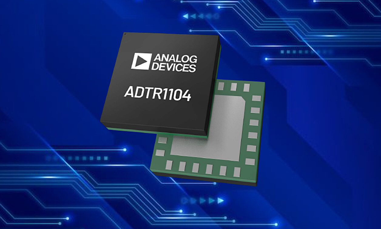 The ADTR1104 operates from 8.0 GHz to 12.0 GHz and is intended for use in phased-array antenna and radar systems, the statement reads. In transmit mode, the device provides a typical output power of 39.5 dBm and a typical small-signal gain of 35 dB across 8.5 GHz to 10.5 GHz, the company says. In receive mode, the company says the IC provides a typical small-signal gain of 23 dB across 8.0 GHz to 10.5 GHz.